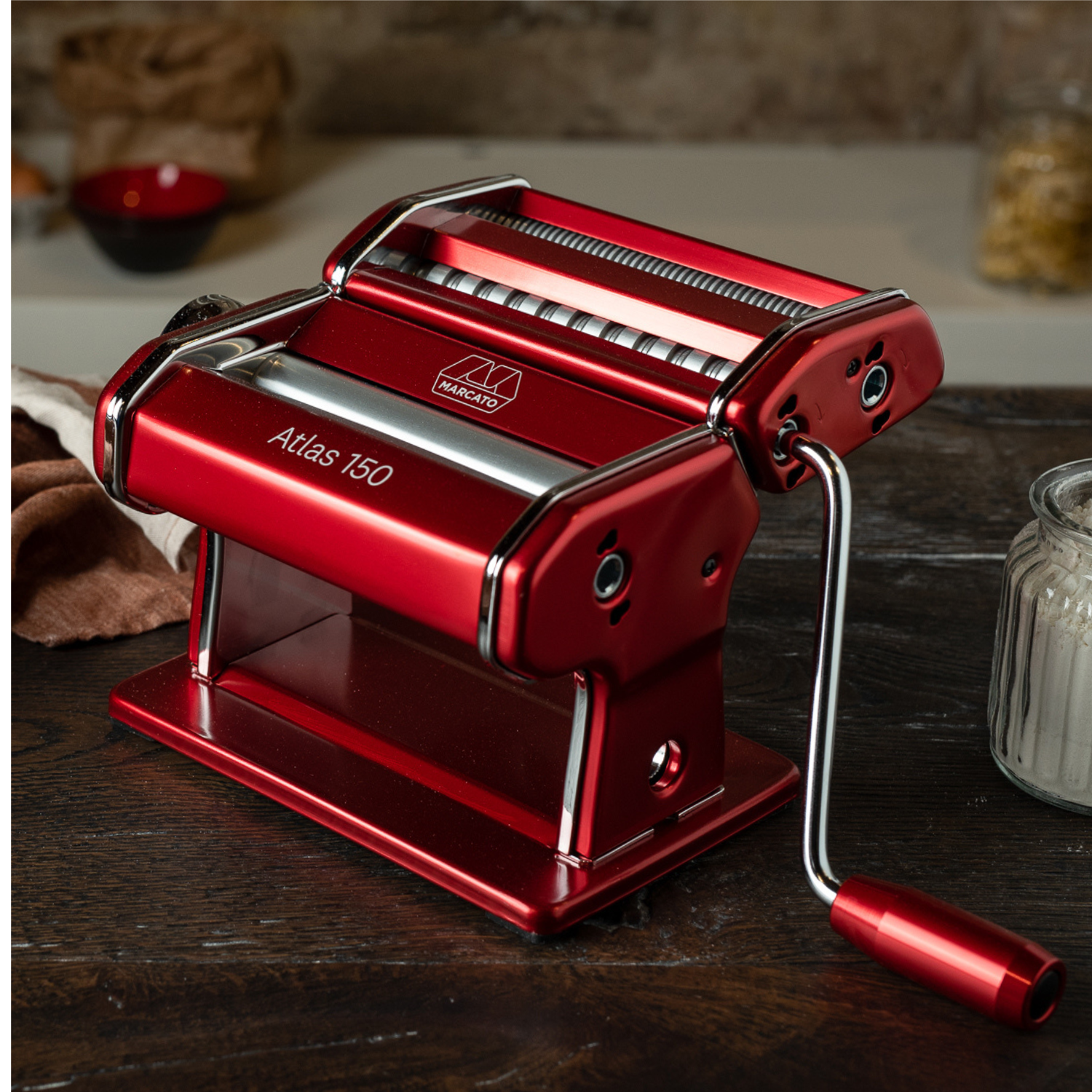 Create fresh, authentic pasta with the Marcato Pastaset (4 pieces). Includes Atlas Classic 150 pasta machine & 2 extra attachments to easily create Lasagna, Fettuccine, Tagliolini, Ravioli & Spaghetti.
