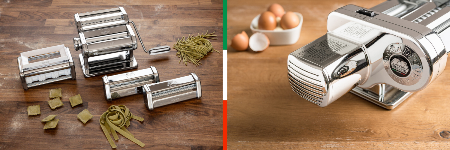 Dive into the world of authentic Italian pasta making. Choose the classic Atlas 150 with free ravioli stamps or the brand NEW Atlas+ Pasta Machine (in multiple colours)